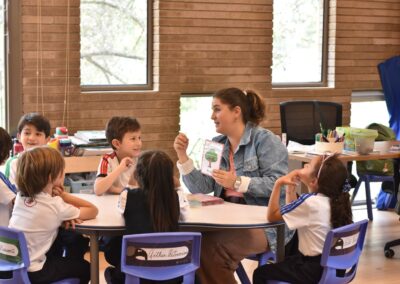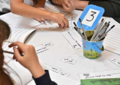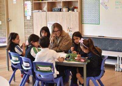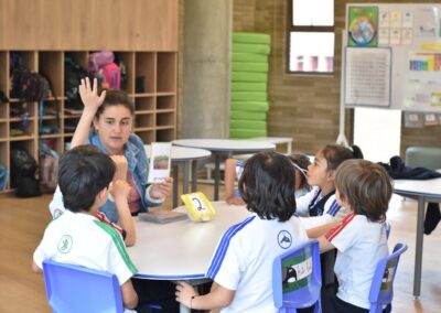 Cada semana, las profesoras de Transición, se reúnen con su respectivo equipo para analizar el progreso de cada estudiante. Con base en este análisis y en las metas del área, se diseñan las estaciones que se implementarán semanalmente. Esta metodología destaca por su flexibilidad: permite atender distintos ritmos de aprendizaje simultáneamente. Por ejemplo, mientras un grupo trabaja de manera guiada con la docente en matemáticas, otros equipos avanzan de forma autónoma en estaciones de arte o exploración.